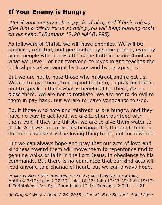 Christian meme based off Romans 12:20 about loving our enemies.